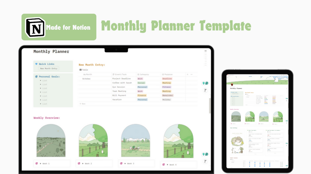 This Monthly Planner Template is perfect for anyone looking to stay organized, track progress, and reflect on their growth—all while enjoying a clean, aesthetic Notion workspace.